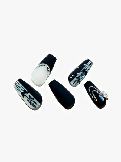 GLAMERMAID-Mani Press On Nails-Length: medium long-Shape: coffin-Basic color: black-Design style: animal print-Finish: matteYou get an added texture that really makes this manicure stand out from the crowd.